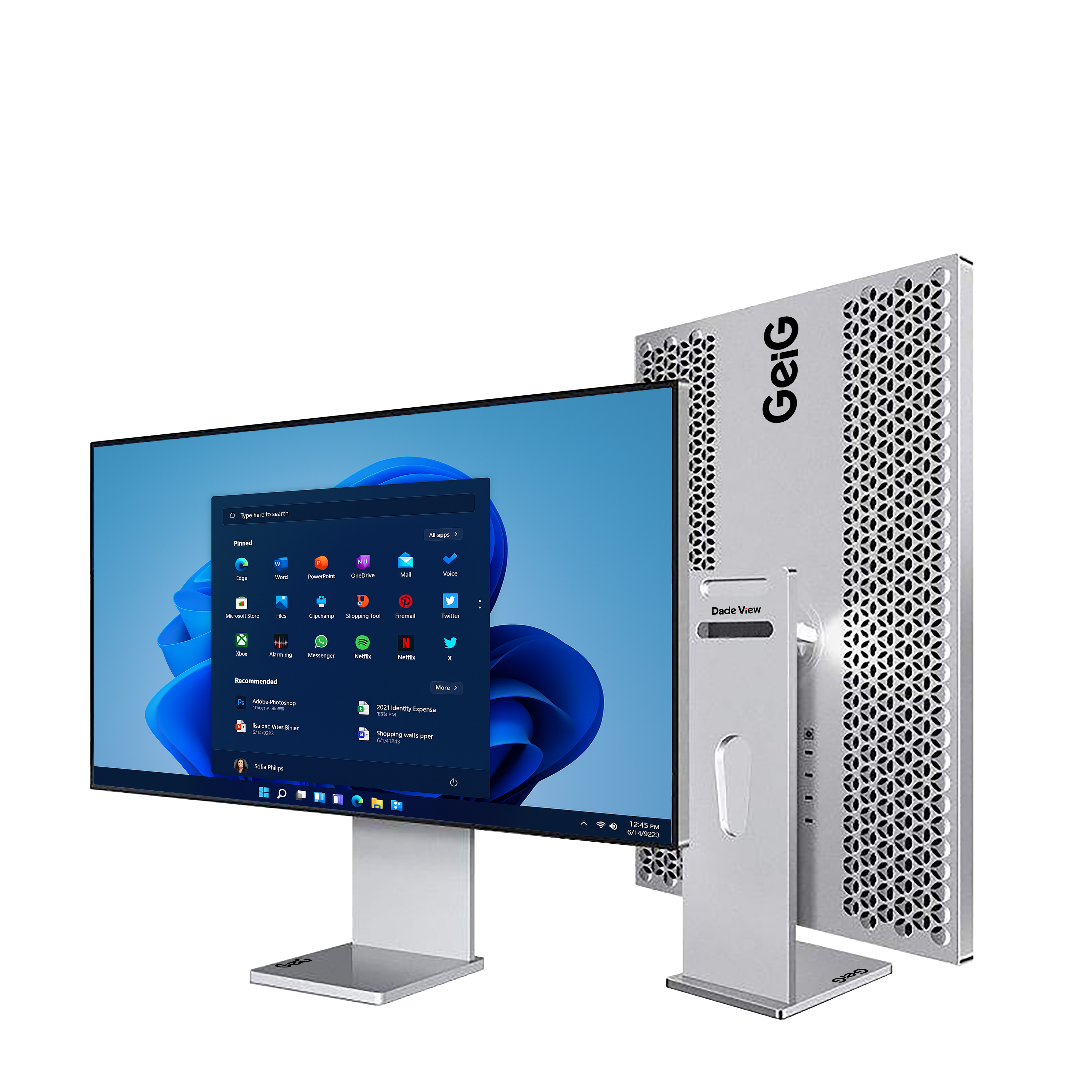 GeiG Dade View 6K32 is a 32-inch 6K monitor (6016×3384) featuring ultra-smooth 120Hz refresh rate, HDR-ready performance, DisplayPort 2.1 & HDMI 2.1 connectivity, USB-C with 90W PD, and a premium 24W quad-speaker audio system all in a sleek silver chassis built for creators and professionals.